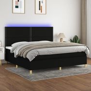 Sommier a lattes de lit et matelas et LED Noir 200x200 cm Tissu