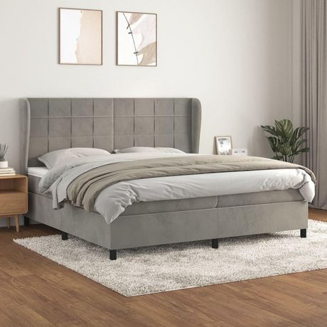 Sommier a lattes de lit et matelas Gris clair 200x200cm Velours