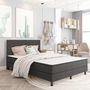 Se distinguant par un design sobre mais elegant, ce cadre de lit sommier tapissier ajoute une touche de charme elegant a la decoration de votre chambre a coucher.