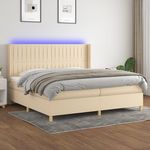 Sommier a lattes de lit matelas et LED Creme 200x200 cm Tissu