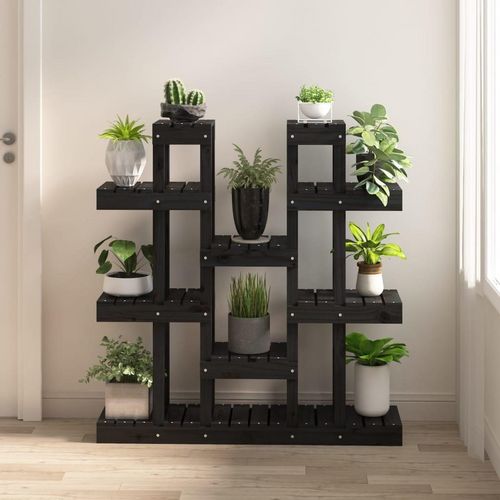 Support a plantes Noir 104,5x25x109,5 cm Bois massif de pin
