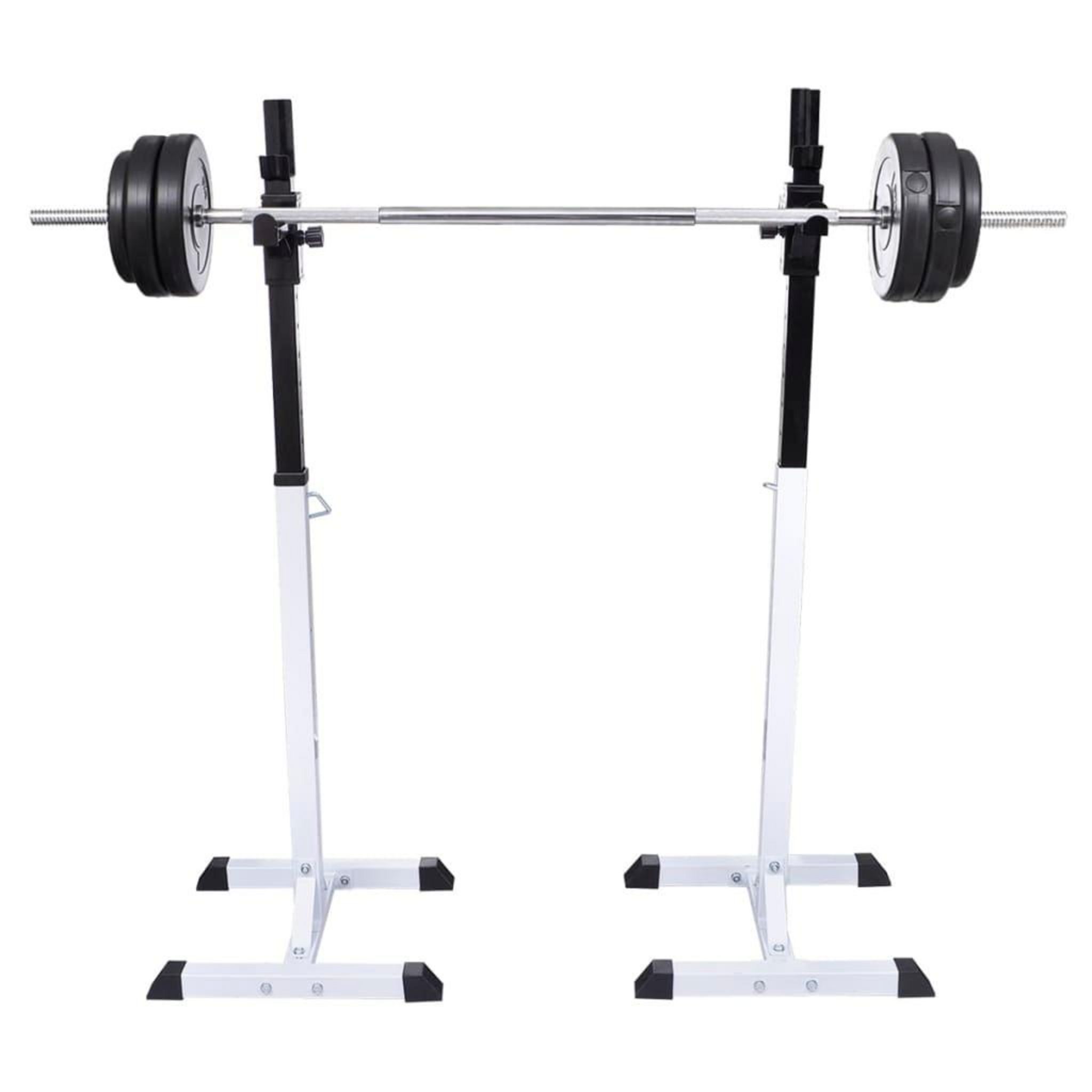 Ce jeu de barbell robuste et stable est parfait pour votre salle de gym a domicile! En combinaison avec un banc a barreaux, il convient a la formation de barbell, aux squats ou en complement d'un banc de barbell. Le support de porte-barbell avec les caracteristiques suivantes: Porte-barbell stable p