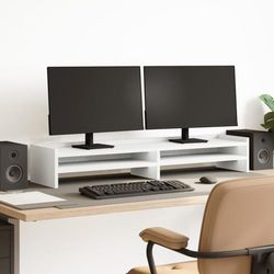 Ce support de moniteur VIDAXL allie esthétique épurée et robustesse. Son revêtement blanc moderne s'intègre parfaitement dans les espaces de travail contemporains, tandis que sa structure en bois d'ingénierie garantit une stabilité optimale pour vos écrans.