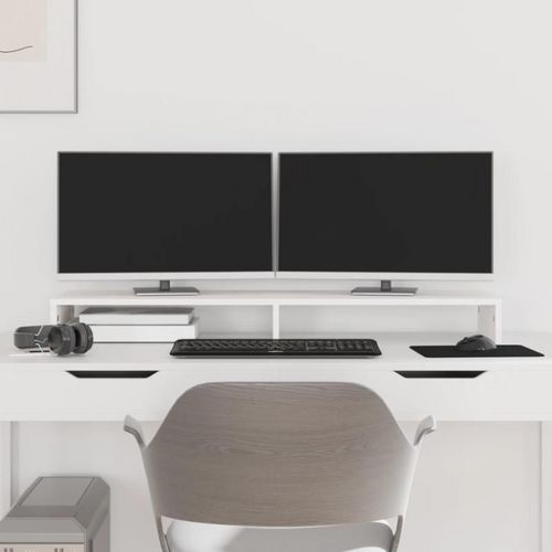 Ce support de moniteur blanc 100x27x10 cm allie robustesse et élégance pour sublimer votre espace de travail. Conçu en bois de pin massif, il offre une stabilité exceptionnelle tout en apportant une touche naturelle et épurée à votre bureau.