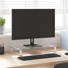 Ce support de moniteur VIDAXL allie esthétique moderne et robustesse grâce à son mélange de verre trempé transparent et de métal. Son design épuré en blanc s'intègre parfaitement dans tout environnement de travail ou gaming, tout en offrant une surface stable pour écrans jusqu'à 20 kg.