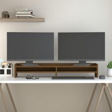 Le support de moniteur Marron miel 100x24x16 cm en bois de pin solide de la marque VIDAXL est conçu pour offrir un espace de travail optimisé et élégant. Ce support est idéal pour ceux qui cherchent à améliorer l'ergonomie de leur poste de travail tout en ajoutant une touche de style rustique grâce à son fini en bois de pin solide. Avec ses dimensions généreuses, il peut accueillir plusieurs moniteurs ou accessoires, rendant ainsi votre espace de travail plus organisé et fonctionnel.