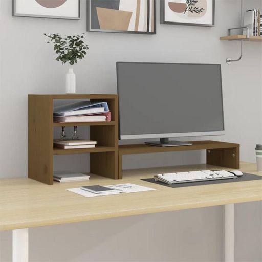 Support de moniteur Marron miel 81x20x30 cm Bois de pin solide