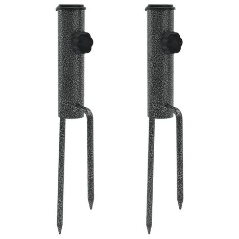 Support de parasol avec piquets 2 pcs 9x35 cm acier galvanise