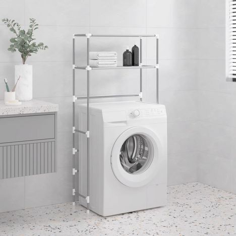 Ce support de rangement a 2 niveaux au-dessus de la machine a laver est certainement une solution parfaite pour creer des espaces de rangement supplementaires dans une salle de bain ou une buanderie surpeuplee.