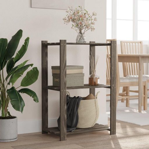 Support de rangement a 3 niveaux gris 60x38x90 cm bois de pin