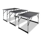 Ces 3 tables peuvent etre fixees ensemble a l'aide des crochets attaches. Toutes les 3 tables sont pliables pour la portabilite et peuvent etre facilement rangees lorsqu'elles ne sont pas utilisees.