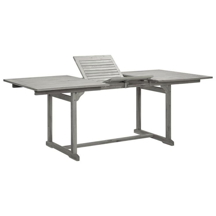 La table d'exterieur est fabriquee en bois d'acacia massif, un bois dur tropical, resistant aux intemperies et tres durable. Grace a sa conception speciale, cette table de jardin peut etre etendue lorsque de l'espace supplementaire est necessaire.