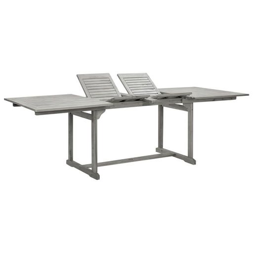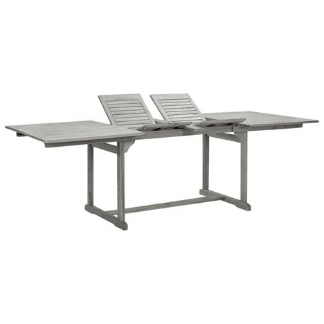 La table d'exterieur est fabriquee en bois d'acacia massif, un bois dur tropical, resistant aux intemperies et tres durable. Grace a sa conception speciale, cette table de jardin peut etre etendue lorsque de l'espace supplementaire est necessaire.