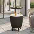 - Fonction 3 en 1 : la table combine une glaciere, une table a cocktail et une table basse en un seul produit. Le refroidisseur de boissons peut etre utilise comme table basse lorsque le dessus est completement ferme. Lorsque le dessus est pose 25 cm au-dessus du bord, la table d'appoint peut etre transformee en table a cocktail avec une glaciere en dessous.