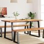 Cette table de salle a manger, avec un dessus en bois d'acacia massif et des pieds stables en forme de U, est un excellent supplement a votre salle a manger ou cuisine.