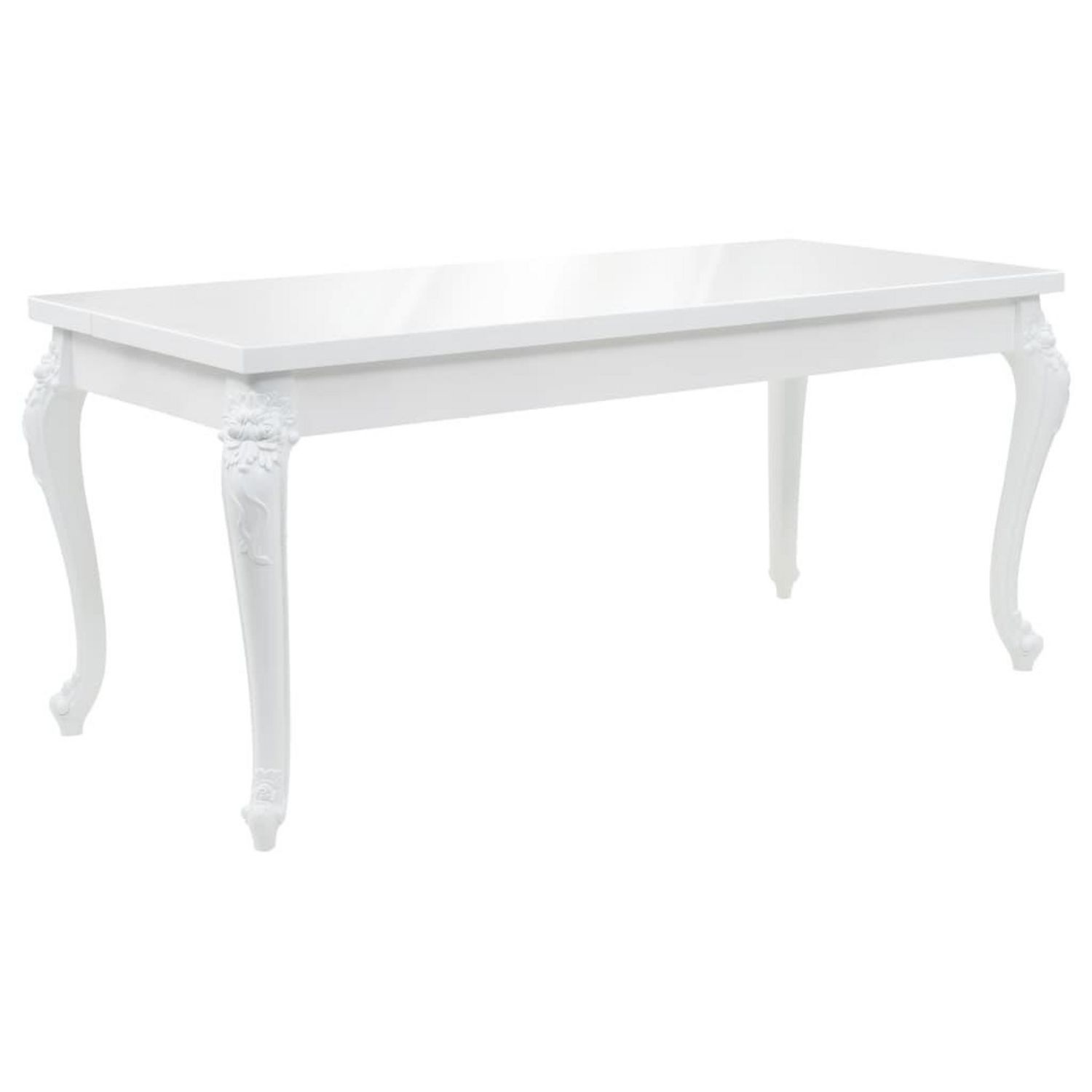 Cette table de salle a manger haute brillance sera un excellent supplement a votre salle a manger avec son design elegant. La finition blanche brillante reflete la lumiere, ce qui contribuera grandement a votre experience culinaire. Cette table de cuisine est fabriquee en panneaux de fibres de densi