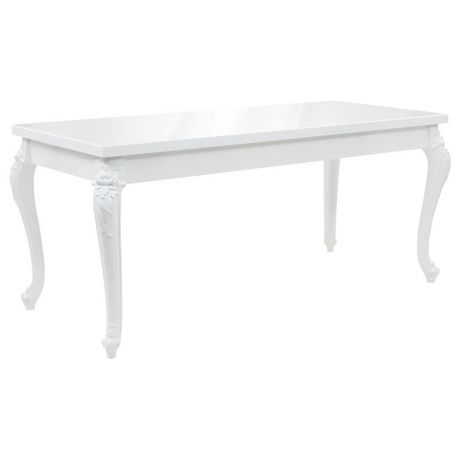 La finition blanche brillante reflete la lumiere, ce qui contribuera grandement a votre experience culinaire. Cette table de cuisine est fabriquee en panneaux de fibres de densite moyenne (MDF). Elle a quatre pieds robustes en plastique leger. La table est facile a assembler.