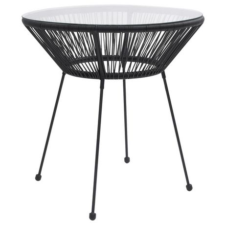- Materiau : rotin PVC rond, verre trempe, acier enduit de poudre