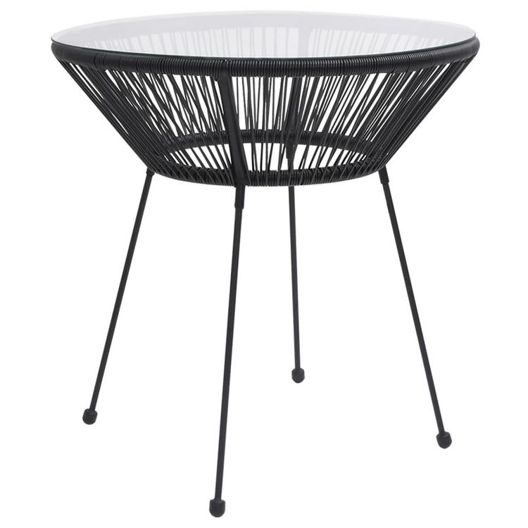 Table a manger de jardin Noir Ø70x74 cm Rotin et verre
