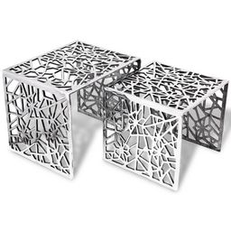 Table auxiliaire carree 2 pieces Aluminium Argente