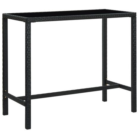 Table bar de jardin Noir 130x60x110 cm Resine tressee et verre