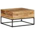 La table basse est fabriquee en bois de manguier brut qui a reçu une belle finition par le polissage, la peinture et le laquage pour fournir un aspect raffine. Les magnifiques grains de bois rendent chaque meuble unique et legerement different l'un de l'autre. Les pieds en fer avec revetement en poudre ajoutent a sa robustesse. Le dessus robuste est ideal pour placer vos boissons, aliments, paniers de fruits ou autres objets decoratifs.