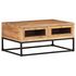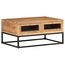 Cette table de canape est fabriquee en bois d'acacia massif, ce qui le rend robuste et stable. Le savoir-faire artisanal et les beaux grains du bois rendent chaque meuble unique et legerement different l'un de l'autre. La table centrale est equipee de 2 tiroirs, afin que vous puissiez afficher ou garder tous les articles que vous souhaitez bien organises. De plus, la base en acier ajoute a sa robustesse.
