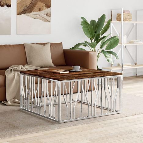 Alliant fonctionnalite et beaute, cette table basse sera le point central de votre piece. Cadre robuste et stable : ce bout de canape a un cadre en acier inoxydable qui est robuste, stable et resistant a la corrosion et a la rouille.Bois de recuperation solide : le bois de recuperation solide se com