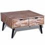 Cette table basse en bois de teck recycle est un accessoire intemporel dans votre maison. Son dessus de table en bois solide offre une surface stable et securisee sur laquelle vous pouvez placer vos boissons, vases, bols a fruits ou ornements, tandis que vous pouvez garder vos petits objets tels que cles, blocs-notes, stylos et autres bibelots dans ses quatre grands tiroirs. Elle peut etre utilisee aussi comme une table d'appoint.