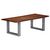 Le dessus de table est en bois d'acacia massif et robuste. Ses pieds metalliques uniques en forme de U, recouverts d'un revetement en poudre, ajoutent au style industriel et rendent la table extremement stable. De plus, le bord du bois qui suit la forme naturelle de l'arbre rehausse la beaute de la table.