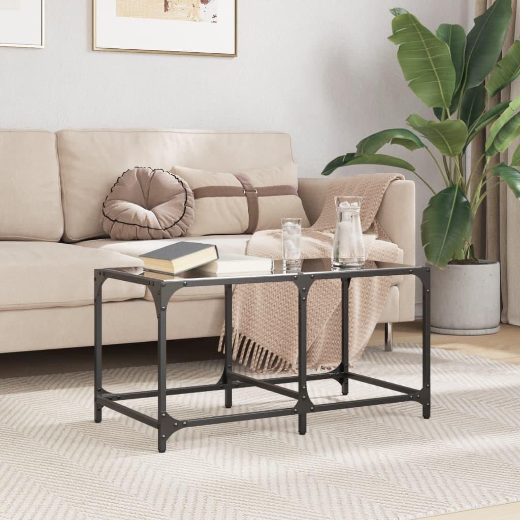 Table basse avec dessus en verre noir 78,5x40x40 cm acier