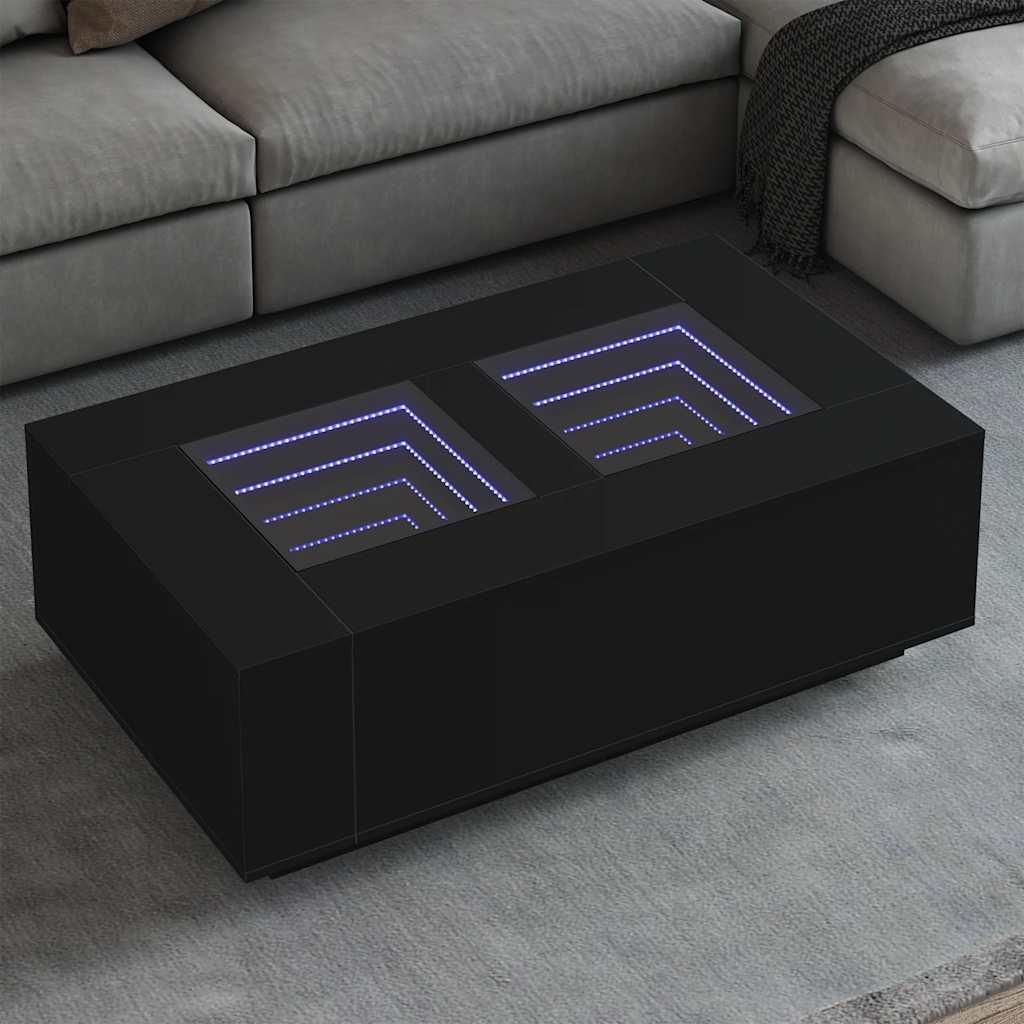 Table basse avec LED infini noir 116x69x40 cm