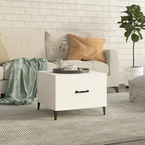 Table basse avec pieds en metal Blanc 50x50x40 cm