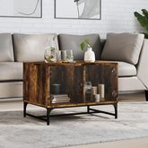 Table basse avec portes en verre chene fume 68,5x50x50 cm