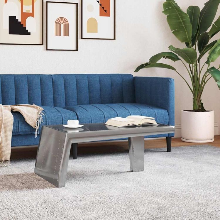 La table basse de style avion est en aluminium haute qualite. Elle est durable, legere et facile a entretenir. La construction en metal et les rivets a motifs donnent a la table basse un aspect industriel. Son dessus de table solide fournit une surface stable sur laquelle vous pouvez placer des boissons, des corbeilles de fruits ou des objets decoratifs. L'article est deja assemble. Aucun assemblage n'est requis.
