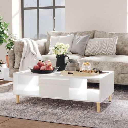Table basse blanc brillant 103,5x60x35 cm bois d'ingenierie