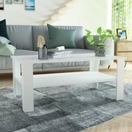 La table basse a un design simple mais elegant qui conviendra a n'importe quel decor. La table est faite de bois d'ingenierie avec des bords de PVC et est stable et durable. L'etagere inferieure dispose d'un grand espace de rangement pour les magazines, les livres et autres objets que vous souhaitez