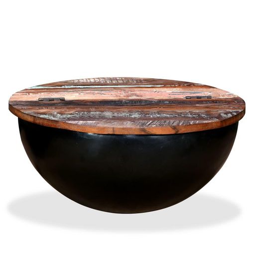 Cette table basse unique en bois a un design industriel et sera un supplement intemporel au decor de votre maison. La base en acier unique en forme de bol donne a la table sa touche industrielle.