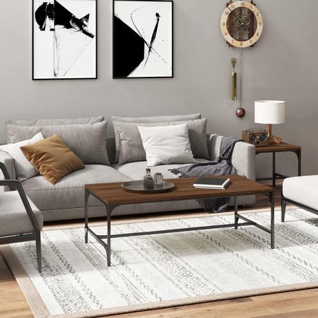 Donnez a votre salon une transformation industrielle unique avec cette table basse elegante ! Materiau pratique : le bois d'ingenierie est d'une qualite exceptionnelle avec une surface lisse et presente egalement resistance, stabilite et resistance a l'humidite.Cadre stable : le cadre en acier de la