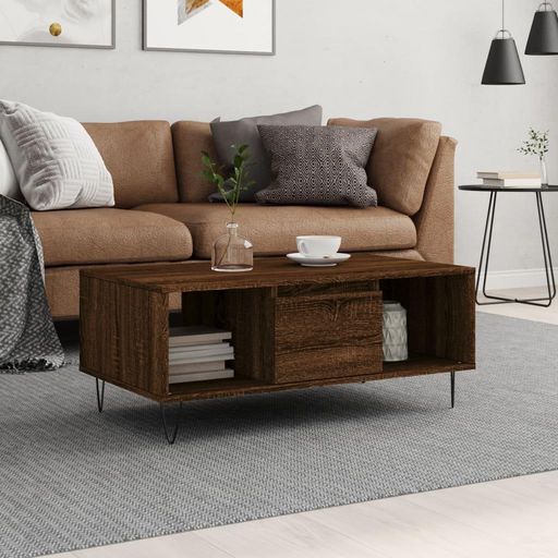 Table basse Chene marron 90x50x36,5 cm Bois d'ingenierie