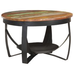 Cette table d'appoint est fabriquee a la main a partir de bois massif de recuperation, provenant de solives, de planchers et de poutres de soutenement de vieux batiments demolis. De plus, elle peut se composer de differents types de bois comme le teck, le bois dur, le bois tropical, le bois de manguier, etc. Cela signifie que le bois de recuperation conserve les caracteristiques de ces differents types de bois. Le bois de recuperation est deja vieilli, altere et seche. Par consequent, il ne retrecit pas ou ne se plie pas. La base en fer ajoute egalement de la stabilite supplementaire. Le dessus de table robuste peut etre utilise pour placer vos boissons ou collations, etc.