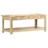 Cette table basse est fabriquee en bois de manguier massif, stable et peint a la main, durable et magnifique, et le travail artisanal ajoute a son spectaculaire style retro. Chaque etape du processus est realisee avec le plus grand soin, qu'il s'agisse de polissage ou de laquage. Le savoir-faire et les magnifiques veines du bois font que chaque meuble est unique et legerement different l'un de l'autre. Le grand compartiment en bas et le petit tiroir du milieu vous offriront un espace de rangement supplementaire. La surface en bois avec des motifs decoratifs ajoute encore a l'elegance. La table basse est facile a monter.