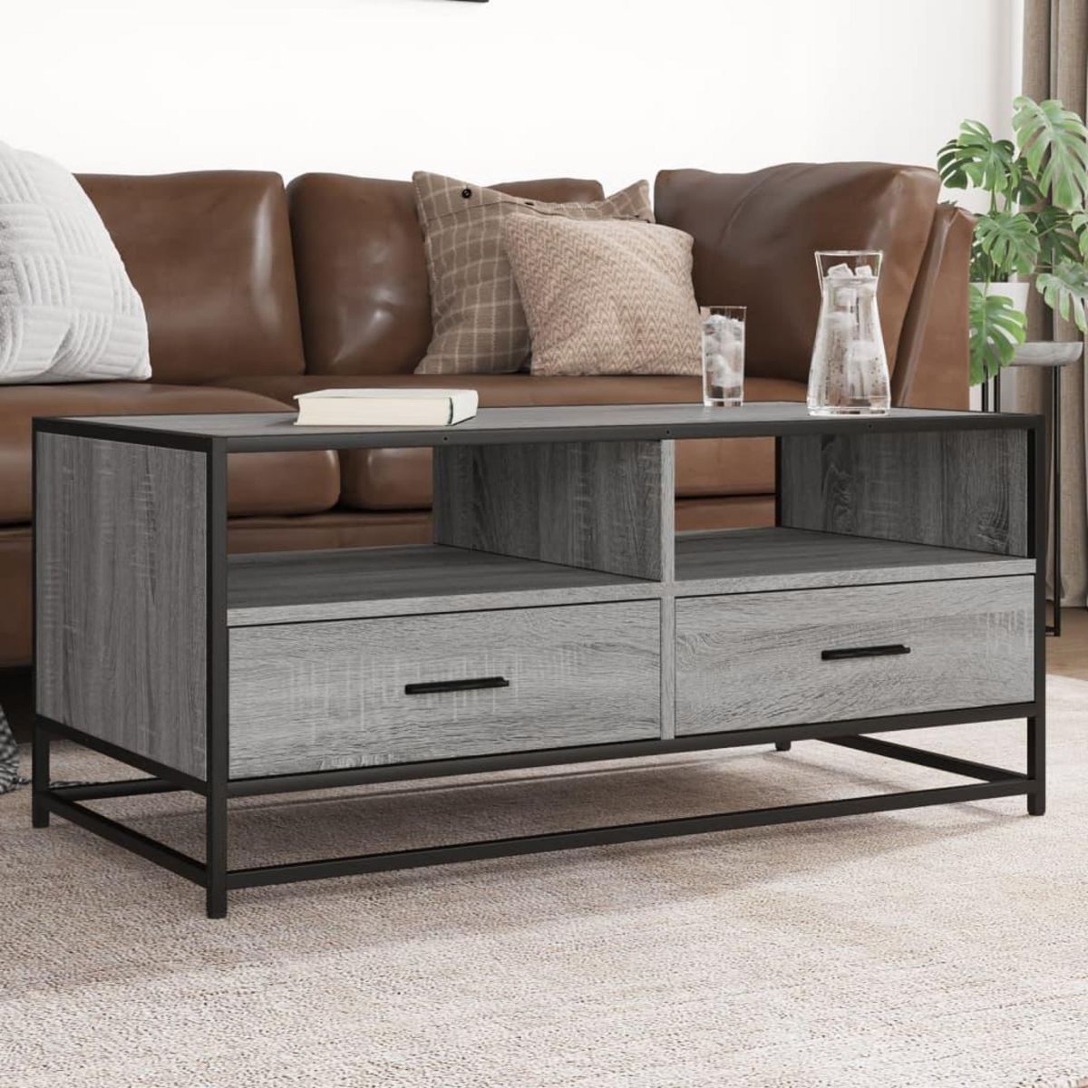 Table basse sonoma gris 100x50x45 cm bois d'ingenierie et metal