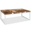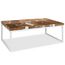 Cette table basse unique, faite de teck veritable avec de la resine, degage un charme rustique et est un element de decor attrayant.