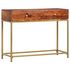 Le bois d'acacia massif utilisé pour cette table est un matériau robuste et durable, connu pour ses beaux grains naturels. La structure est renforcée par un cadre en fer poussiéré, ce qui lui confère une stabilité et une solidité exceptionnelles. Les deux tiroirs intégrés offrent un espace de rangement pratique pour les objets personnels.