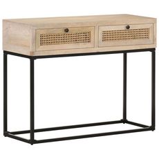 Table console 100x35x76 cm Bois de manguier et canne naturelle