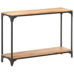 Cette table de couloir est faite de bois d'acacia massif, un bois dur avec des grains denses. Cette table magnifiquement conçue est stable, durable et accrocheuse. De plus, l'artisanat exquis et les belles veines du bois font que chaque piece soit legerement differente l'une de l'autre. Avec son cadre en acier enduit de poudre noire, la table en bois est stable et robuste. Le dessus robuste vous offre suffisamment d'espace pour mettre vos paniers de fruits, cadres photo ou autres objets decoratifs. L'etagere inferieure est ideale pour placer des magazines, des livres et d'autres petits essentiels bien organises et a portee de main.