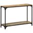 Cette table de couloir est fabriquee en bois de recuperation provenant de solives, de planchers et de poutres de soutenement de vieux batiments demolis et peut comprendre de differents types de bois comme le pin, le teck, le hetre, le chene, le cedre, le bois de manguier, l'acacia, etc. Cela signifie que le bois de recuperation conserve les caracteristiques de ces differents types de bois. Le bois de recuperation est deja vieilli, corrode et seche, donc il ne retrecit ni se plie. Cette table en bois est entierement faite a la main et les beaux grains de bois rendent chaque meuble unique et legerement different l'un de l'autre. Avec son cadre en acier enduit de poudre noire, la table est stable et robuste. Le dessus robuste vous offre suffisamment d'espace pour mettre vos paniers de fruits, cadres photo ou autres objets decoratifs. L'etagere inferieure est ideale pour placer des magazines, des livres et d'autres petits essentiels bien organises et a portee de main.