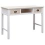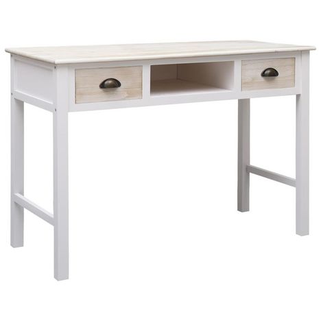 La table est en bois de peuplier de qualite superieure et en bois de paulownia , les pieds forts contribuent a la construction robuste. De plus, 2 tiroirs et un compartiment ouvert offriront un grand espace de rangement.