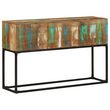 Cette table d'entree est fabriquee a la main a partir de bois de recuperation massif, une combinaison de bois de recuperation comprenant du teck, du bois de manguier, du pin, du hetre, etc. Ces bois sont recycles a partir d'anciens batiments tels que des usines, des hangars et des bateaux. Cela en fait une option ecologique fantastique dans la fabrication de meubles. Comme chaque piece est faite a la main, les couleurs varient avec de nombreuses nuances de bleu, de vert, de creme et parfois d'orange, de rouge et de rose revelees. Cela signifie meme que chacun est unique ! De plus, ses pieds en fer enduit de poudre ajoutent a la stabilite de la table ainsi qu'a son charme industriel.
